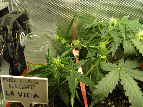 Roślinką w boxie leci właśnie druga doba, więc tak będę liczył, pomimo iż dwa poprzednie dni spędziły w eazy plugsach. Póki co podlewam jedną i drugą roślinkę połówką kieliszka lejąc wodę dookoła nich. Woda regulowana dzbankiem filtrującym, z założonym nowo filtrem, gdy spadnie za mało to mieszam ze sklepową lub odstaną kranową. Staram się podlewać wodą o PH 6.0, czasami wyjdzie 6.5. Medial Light przeszło już pierwszy LST na próbę, jednak na razie zaprzestaje dalszego LST, gdyż jest ona jeszcze sporo za mała na takie działania, chociaż muszę się liczyć z ograniczoną przestrzenią w moim boxie. Fotki poniżej, up za jakiś tydzień, może dziesięć dni.